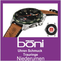 Wir sind für sie daUnsere Öffnungszeiten:Dienstag bis Freitag 08.00 - 12.00 / 13.30 - 18.30hSamstag 08.00 –12.00 / 13.30 –16.00hIm Dezember Montags geöffnetKontakt:Böni Uhren BijouterieHirschenplatz 28867 Niederurnen(CH)Tel. +41 (0) 55 610 17 39Mail: info@boeni-uhren.ch