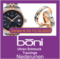 Böni Uhren Schmuck Trauringe I Hirschenplatz 2 I CH-8867 NiederurnenTel. +41 (0)55 610 17 39 I info@boeni-uhren.ch I CHE-105.777.697 MWSTEigenes Uhren-, Goldschmiede– und Gravier-Atelier I Uhren - Schmuck - Trauringe